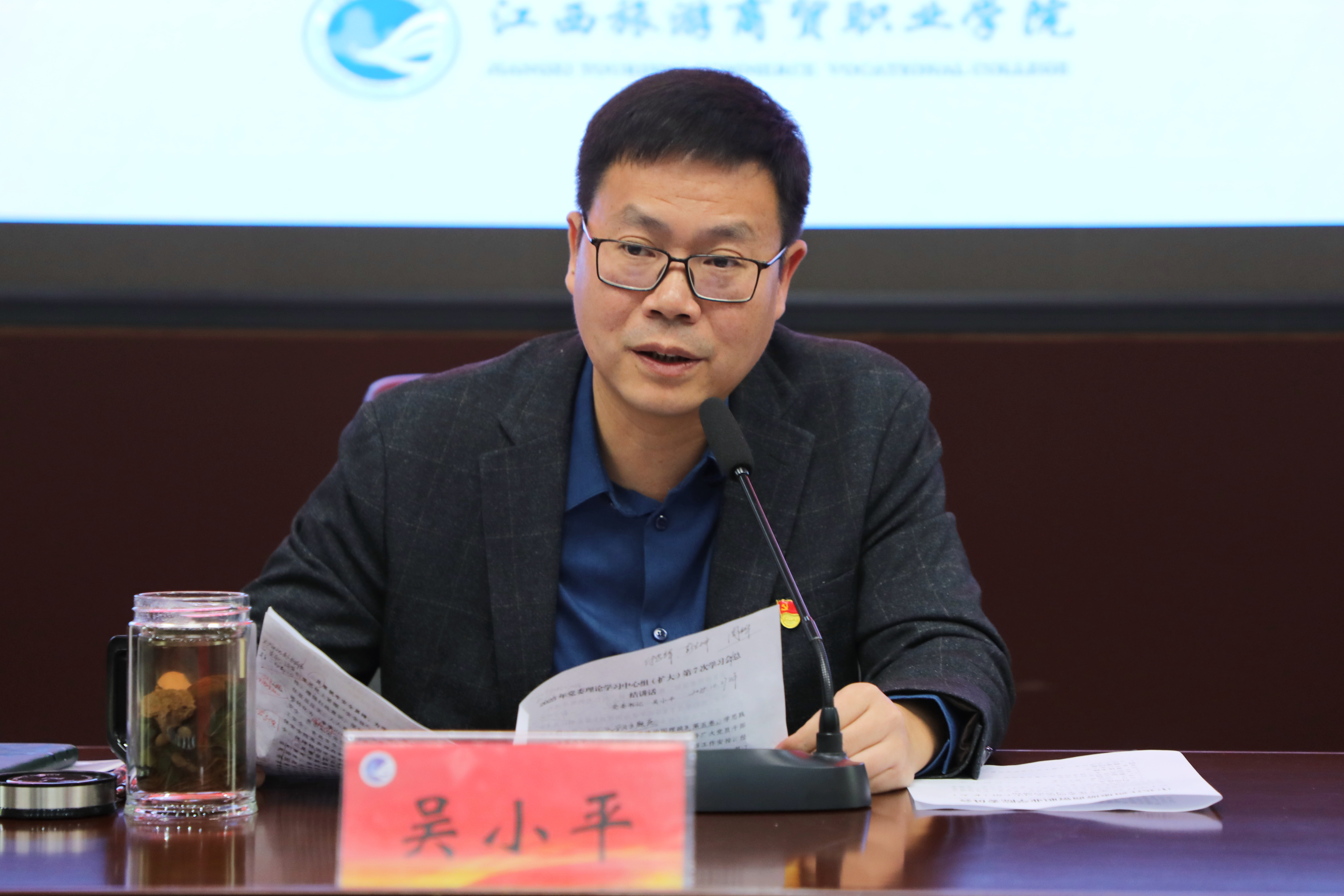 吴小平强调,一是要提高思想认识,深刻领悟党的创新理论的真理力量和实践伟力。要深刻领悟“两个结合”理论创新的时代价值,善于运用辩证唯物主义和历史唯物主义的世界观和方法论解决学校实际问题;要深刻领悟中国式现代化的丰富内涵与实践要求,充分认识教育的全新历史方位,谋划好学校“十五五”规划,确保各项任务落地见效;要深刻领悟“两个确立”的决定性意义,教育引导广大师生坚定拥护“两个确立”、坚决做到“两个维护”。二是要坚持学深悟透,抓实抓好学习宣传贯彻工作。要融会贯通学,把学习贯彻《习近平谈治国理政》第五卷同学习第一、二、三、四卷贯通起来,同党的二十届四中全会精神结合起来,切实做到一体学习领会、整体融会贯通、全面贯彻落实;要联系实际学,把自己摆进去、把工作摆进去、把职责摆进去,破解工作难题;要专题研讨学,精心组织安排,积极开展对象化、分众化、接地气的学习宣传贯彻活动,营造良好氛围。三是要注重学用结合,推动党的创新理论在学校落地生根。要坚定不移走“新双高”发展之路,打造服务发展与立德树人双逻辑相互促进的新办学生态,为推进中国式现代化江西篇章贡献旅商力量;要充分认识安全与发展的关系,筑牢安全屏障,为学校高质量发展保驾护航;要坚持自我革命,巩固深入贯彻中央八项规定学习教育成果,在全面从严治党中强化政治保障。