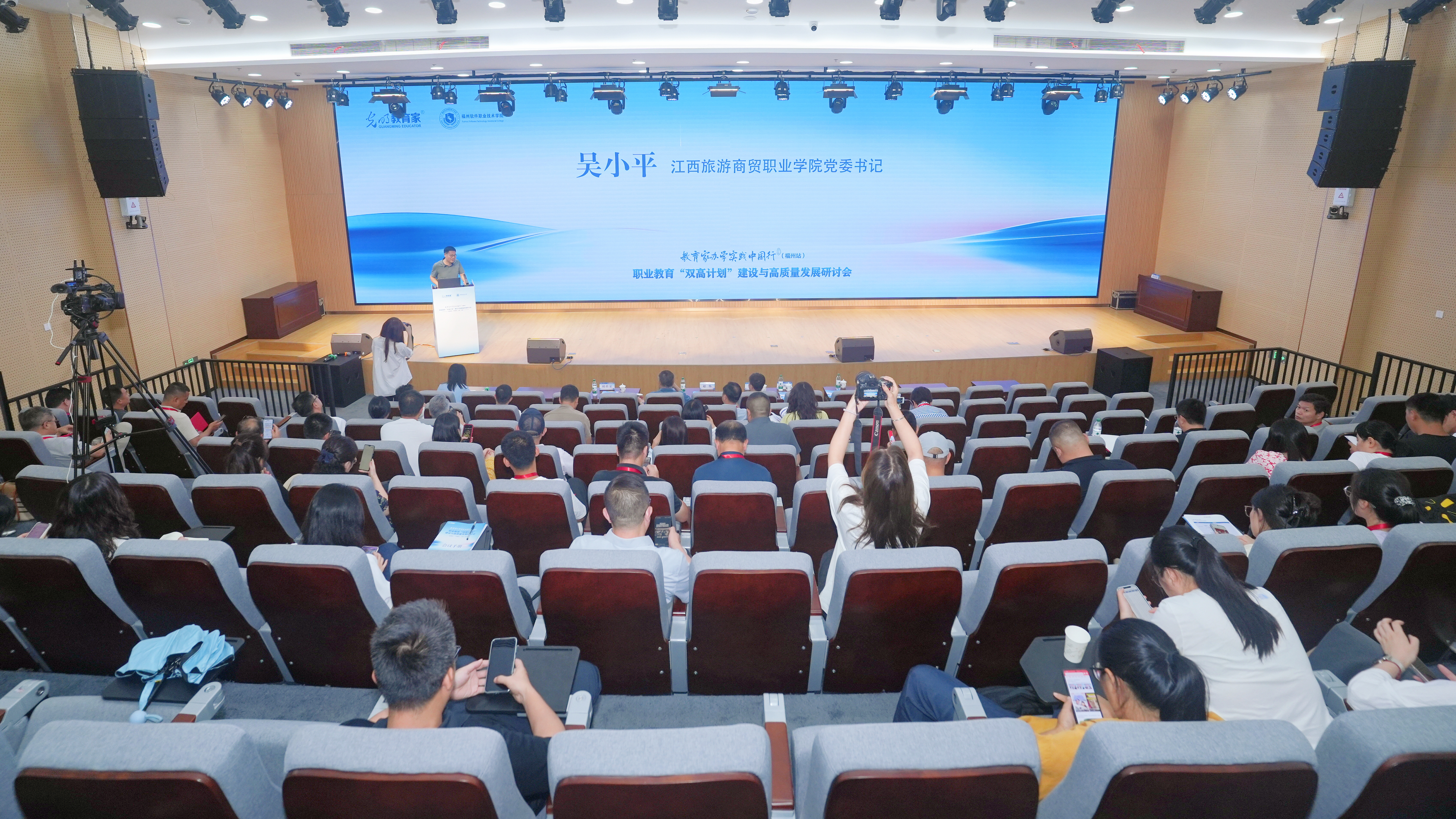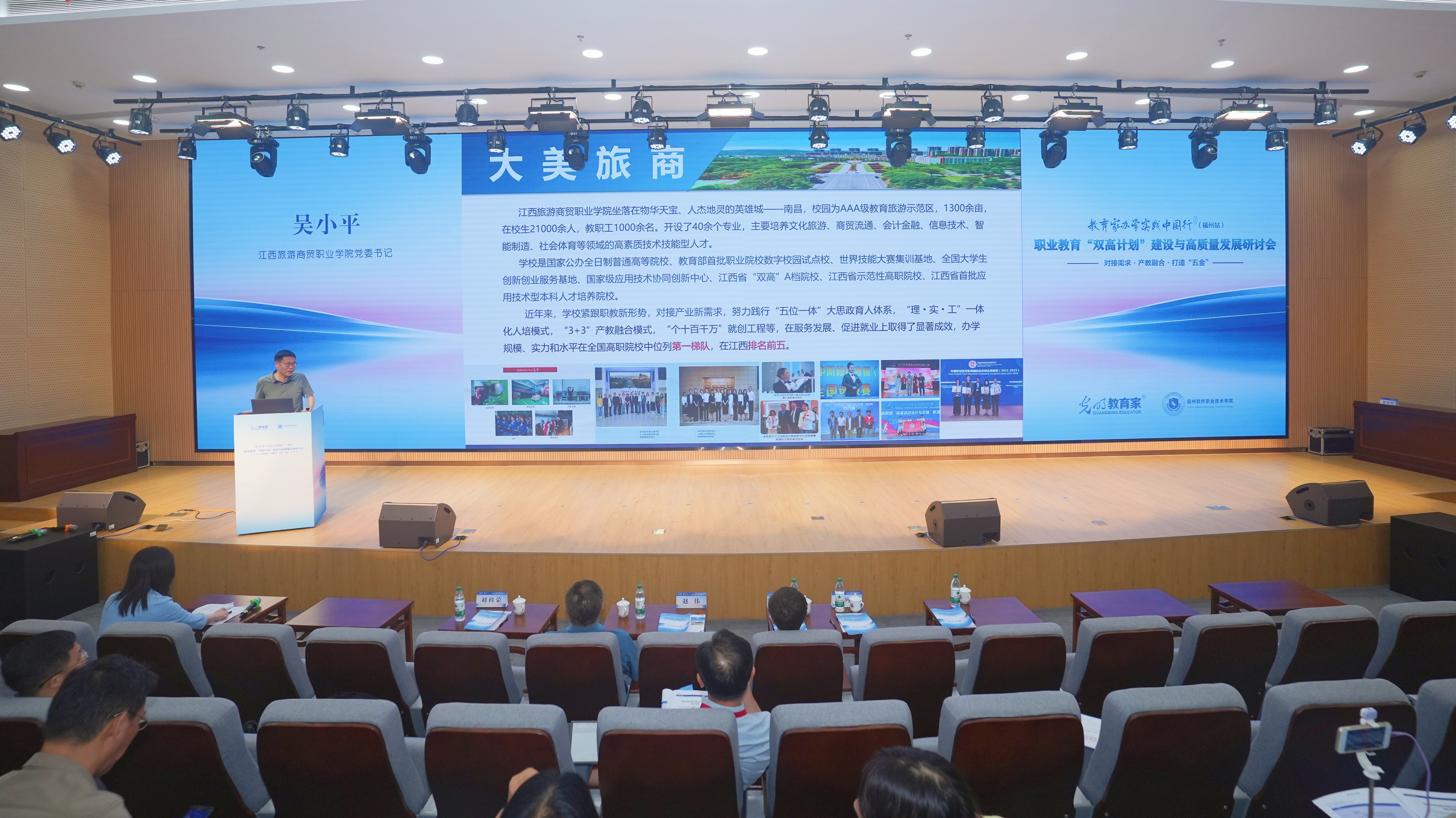 7月19日至20日,由光明日报《教育家》主办的教育家办学实践中国行暨职业教育“双高计划”建设与高质量发展研讨会在福州举行。来自全国各地近百所职业院校书记、校长及职教专家参加会议。学校党委书记吴小平应邀参会并作职业教育高质量发展经验分享,学校荣获“职业教育高质量发展优秀案例”。